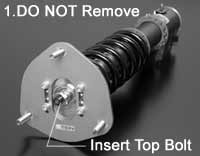 When installing an EDFC Series product on a strut-type MONO FLEX, it happens that users mistakenly remove the insert top bolt (Photo 1), thinking that the EDFC motor goes there. This is very dangerous, since not only does it render the shock absorber unusable, but also inner parts may burst out and cause injury.