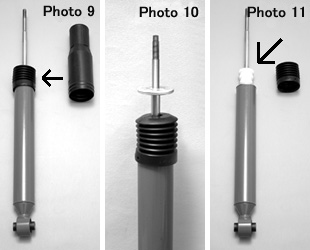 Take for example a dust boot. If the vehicle’s dust boot is applied to a shock absorber that has one (Photo 9), the two will interfere and break, necessitating replacement. Users easily make this mistake due to experience with another vehicle or because the TEIN dust boot may seem too short. Its length however enables proper functioning with the car on the ground (Photo 10).
