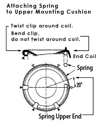 This applies to installing low down springs into a Honda Stream (RN1 to 4). Upper spring mounting cushions made of rubber-covered steel sit between the spring and its upper seat. Each has 6 clips that can bend around the end coil of the spring. If you do not complete bending the clips on the front upper mounting cushions, they will interfere with the springs.