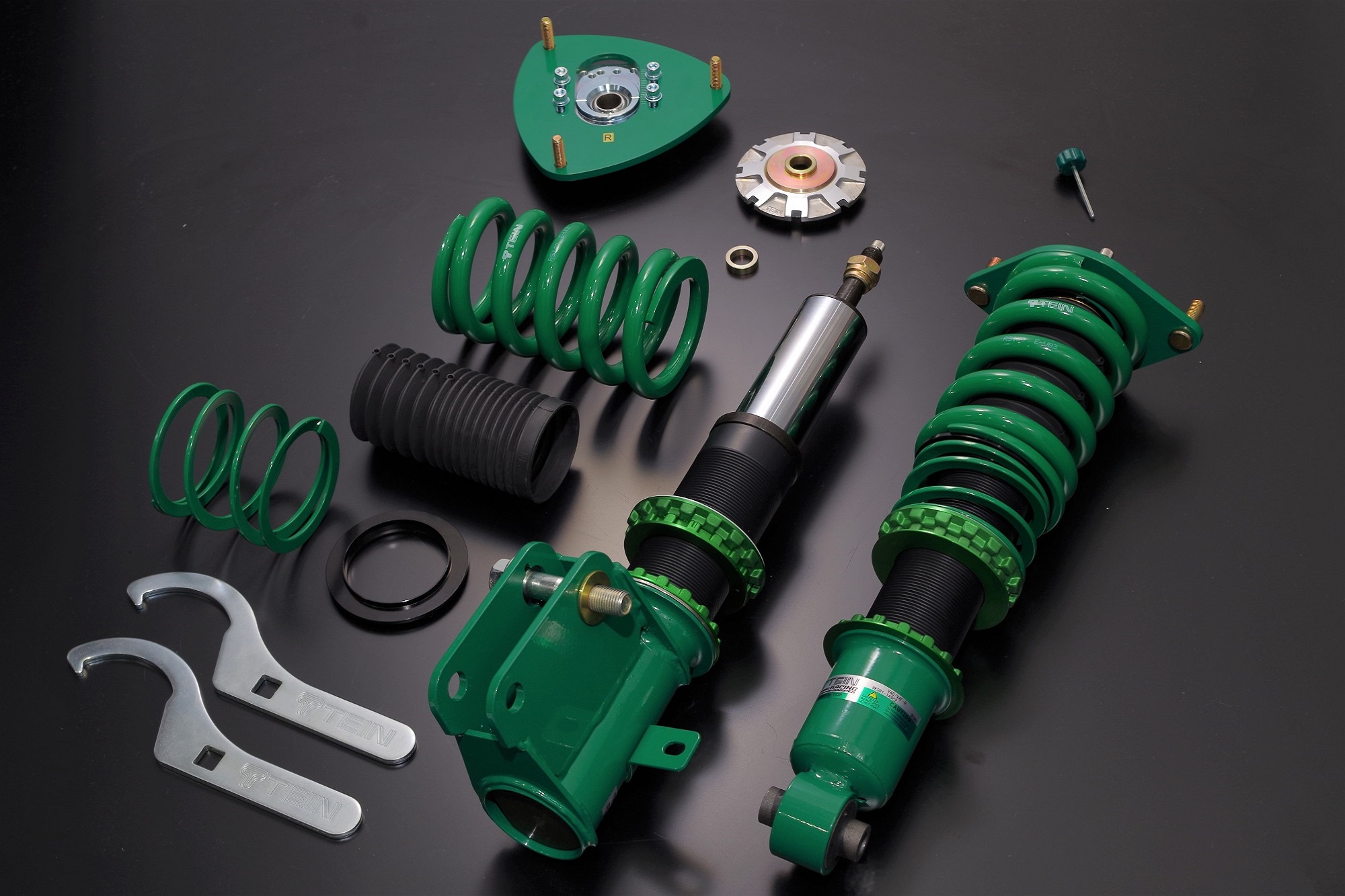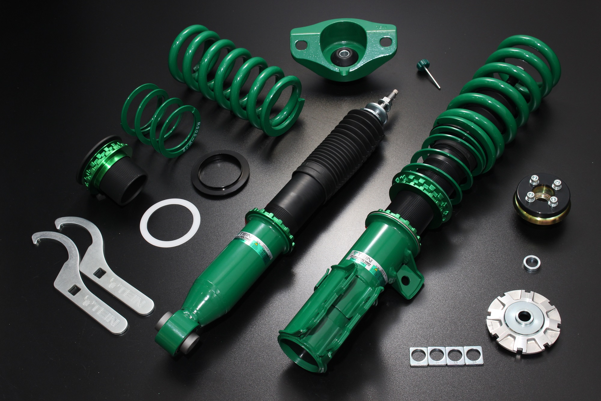 A bright TEIN-green powder paint is used on the shock absorber’s shell case. Our powder coating technique produces an extremely strong and durable barrier. No harmful organic solvents are used, for minimal pollution.