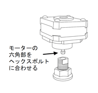 まず、ヘックスボルトとモーターシャフトの六角部を合わせて挿入します。
