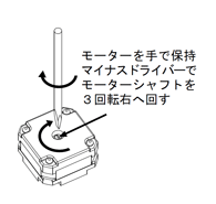 モーターを手で保持したままマイナスドライバーでモーター中心部のシャフトを右へ3回転回してください。