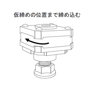 モーターを仮締め位置まで(止まるまで)ねじ込んでください。モーターシャフトはモーターと共に回転しますが、モーターを回す手が重くなった時はマイナスドライバーでモーターシャフトを右へ2回転ほど回して、再度モーターをねじ込んでください。