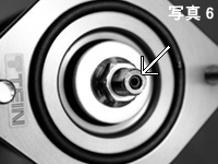 この時によく発生しているのが、もともとピストンロッドの中に入っているヘックスボルトを取り除かずに、EDFC ACTIVEおよびEDFC ACTIVE PROのコントローラキットに付属されているヘックスボルトを入れてしまうという事例です。万が一、もともとピストンロッドの中に入っているヘックスボルトを取り除かずに、上からEDFC ACTIVEおよびEDFC ACTIVE PROのコントローラキットに付属されているヘックスボルトを入れた場合、【写真6】のようにピストンロッドの端付近までしか、ヘックスボルトが入りません。さらにこの状態でモーターを取付けようとすると、【写真7】のようにモーターがピストンロッドのネジまで届かず、グラグラした状態のまま締め付けられない状態となります(正常な状態では【写真8】の位置までモーターを締めこむことができます)。これが異常と判断されて、弊社までモーターの返品やお問い合わせを寄せられるケースが多発しております。