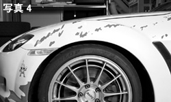 ショックアブソーバー、またはローダウンスプリングを装着する際、ジャッキアップまたはリフトアップした状態ではサスペンションアームのボルトは仮締めとしておき、車両を地面に降ろした1G状態での締め付けが必要となります。【写真3】 ジャッキアップまたはリフトアップした状態でサスペンションアームのボルト【写真2】を規定のトルクで締め付けますと、車両を地面に下ろした状態(1G状態)で、車高が落ちないという症状が発生致します。サスペンションアームとボディを介するゴムブッシュにねじれが発生し、そのゴムブッシュのねじれる力によって車高が落ちないといった状態になってしまうのです。最悪の場合はゴムブッシュの破損にもつながります。
