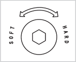 クリック(減衰力調整ダイヤル)を時計回りに回転させ、止まった箇所が0段(最も減衰力が高い段数)です。 この0段を基準に、反時計回りに回転させると減衰力が低くなっていきます。 「カチ、カチ」という感触を1段ずつ確認しながら回転させてください。 0段から数えて16段目の箇所が16段(最も減衰力が低い段数)です。 今何段なのかわからなくなった時は一旦0段に戻してから再度調整を行ってください。