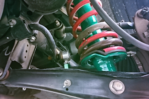 tanabe DF210スプリングとの組み合わせで取り付けし、アライメントも調整済で、ショートスタビリンクも装着済です。