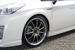 カツカツに走るわけではないのでリーズナブルなテインストリートベイシスを迷わずセレクト。鮮やかな緑色もハイブリッドらしく好感。 車高は出荷時よりさらに下げて取り付けてもらいました。
