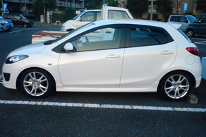 デミオのタイヤハウスの見た目が気になる方へ! 自分のデミオは、新車時のフェンダーとタイヤの間が フロント指3本 リア指4本でした。 交換後 フロント指1本半 リア指2本になり、見た目最高!! になりました。 乗り心地に関しては、さすがに舗装が悪い所などでは、正直悪くなります。 ただ、スポーティーな乗り心地が好きな方には、こっちの方がOK?かな。 とにかくダウンサスとしては、お値段も安くかなりお勧めですね。 チラリと見える緑も最高ヽ(^o^)丿