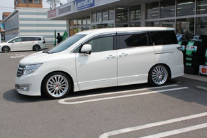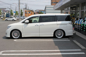 初車高調です。嫁・子供からの苦情を覚悟しての装着でしたが、許容範囲の乗り心地で満足してます。装着して2ヶ月ですが、家族からの苦情もありません。写真の車高は推奨値ですが、この車高だと自宅の車庫に入れず、現在は推奨値プラス1.5cmです(涙)