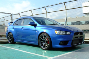 フロントは程よく、リアは少し控えめに車高を落としています。 なんせタイヤとフェンダーとの隙間がすっごく広い三菱車なので、これだけでグっと見栄えが良くなりました。