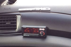 コントローラー取付けの際、作業をお願いしたショップ様から「EDFC ACTIVE PRO」のコントローラーは、内部にGセンサーが組み込まれているため、なるべく垂直な平面に固定する必要があるとのことでしたので、垂直面の少ない私の車両では、助手席側のインパネに両面テープで固定することにしました。