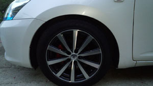初めての車高調だったので、エントリーモデルということで選びました。F50? R40?にしました。タイヤとフェンダーの隙間からかすかに見える緑色がカッコいいです!乗り心地は純正より良くなったと思います!?ゴツゴツ感が減った感じです!